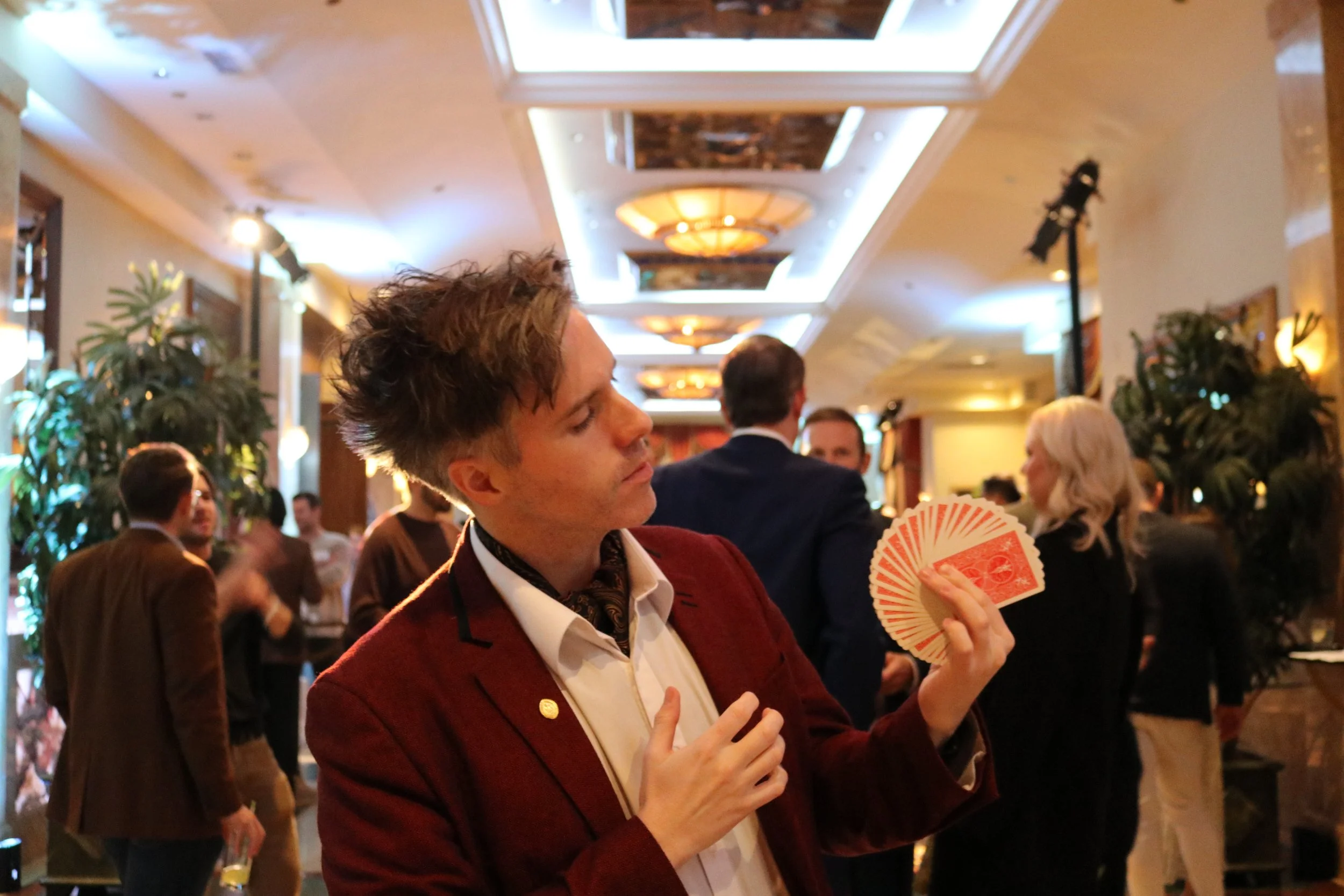 Parlor, like stage magic, is performed in front of a seated audience but in a more intimate setting. I perform this style regularly at birthday parties, corporate events, retirement parties, private shows and at venues like The Magic Castle and RIdeau.